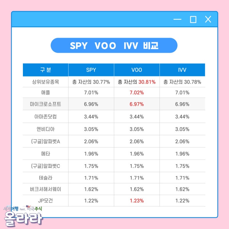 S&P 500 지수를 추적하는 4가지 ETF 상품을 비교해 보면 대략적인 아이디어를 얻을 수 있을 것 같습니다. 이런 방법으로 다른 ETF상품에 대해서도 차근차근 알아가실 수 있습니다. 오늘도 나의 금융지능 향상을 위한 미라클모닝은 계속됩니다. 계속하다 –
